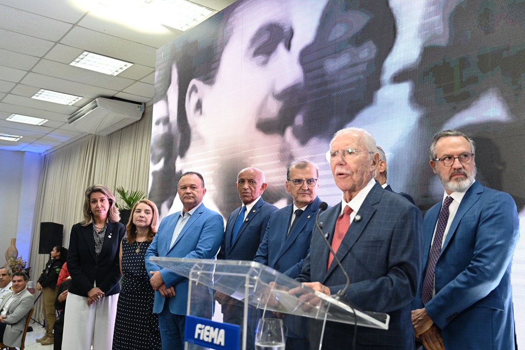 No pronunciamento feito na Federação das Indústrias do Maranhão (Fiema), nesta segunda-feira (05), quando recebeu uma homenagem pelos quarenta anos da redemocratização do Brasil, Sarney disse que foi orientado a fazer, em vez de um discurso, uma palestra sobre economia do Maranhão, contudo observou que não faria sentido falar sobre algo que a plateia tinha amplo domínio, portanto só lhe restava agradecer a deferência recebida.